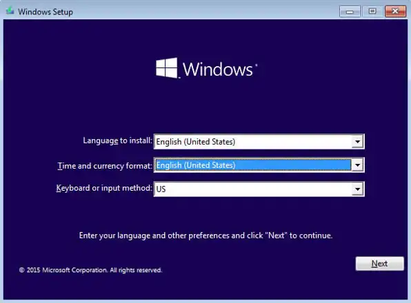 Step 2. Press F12 to enter the boot menu and boot from your installation disk. Wait for the installation disk to finish loading, then select language and proceed with hitting Next.